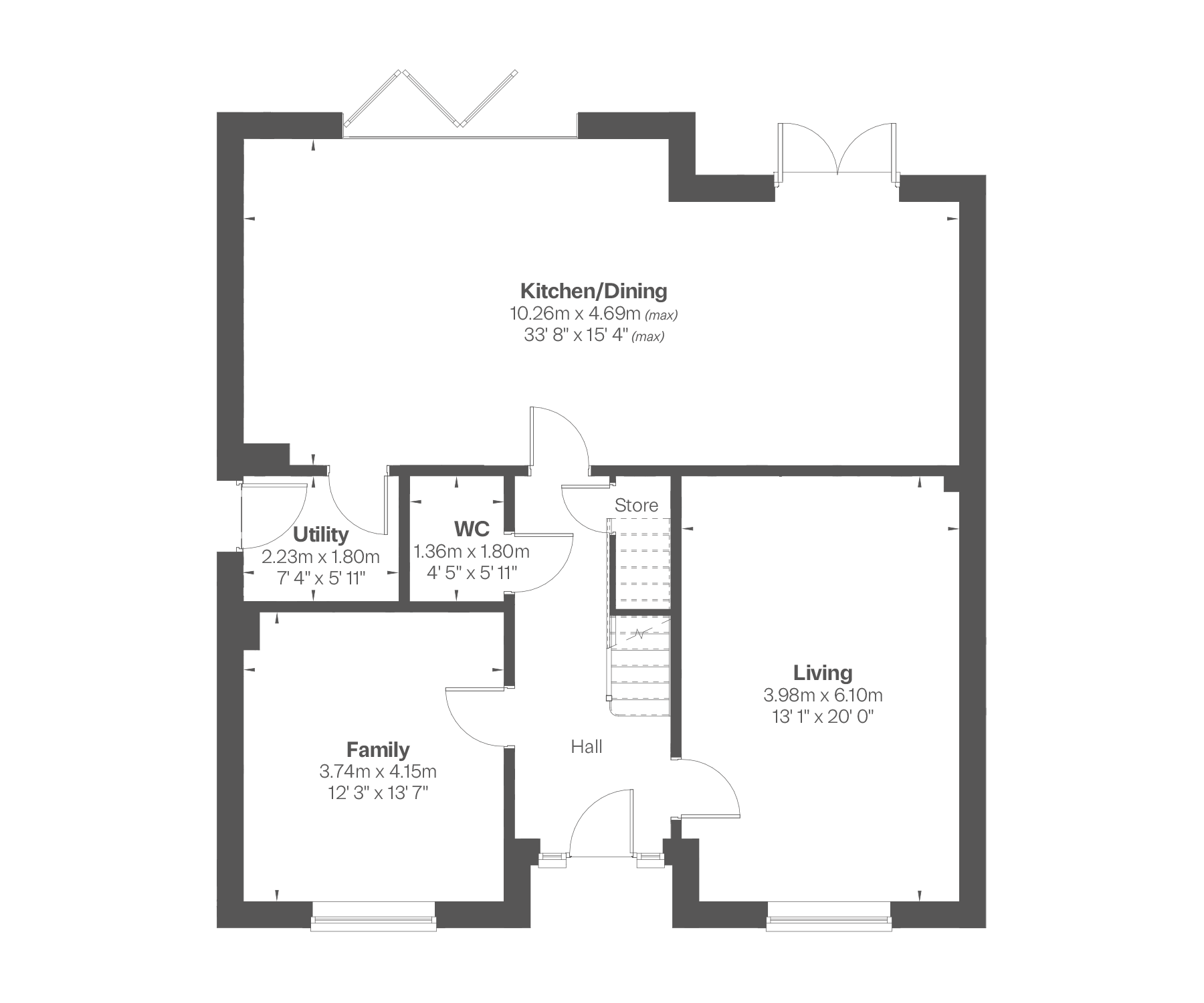The Loxley features an expansive open-plan kitchen and dining area with bifold doors and French doors onto the rear garden