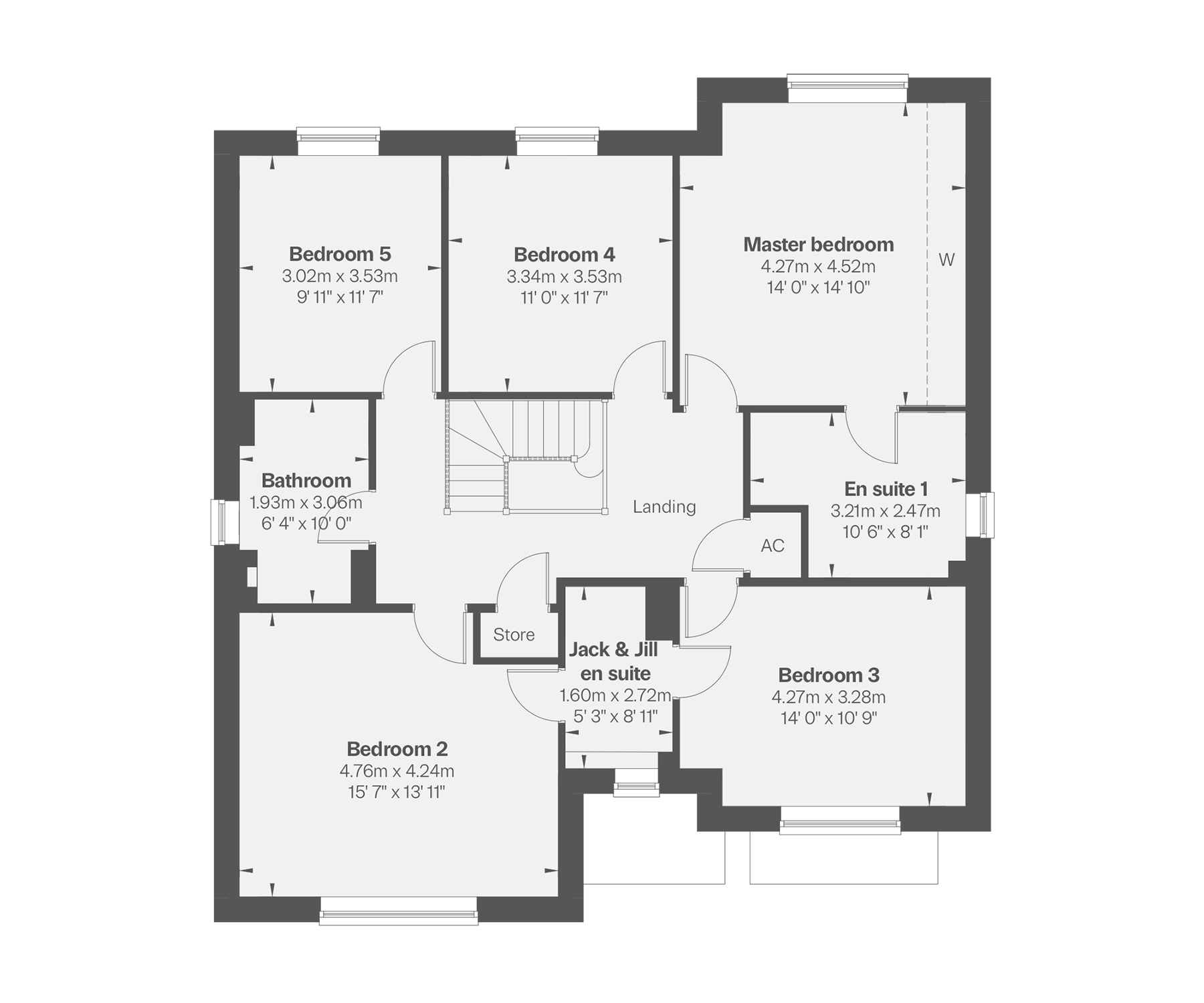 - Five spacious bedrooms around a central staircase