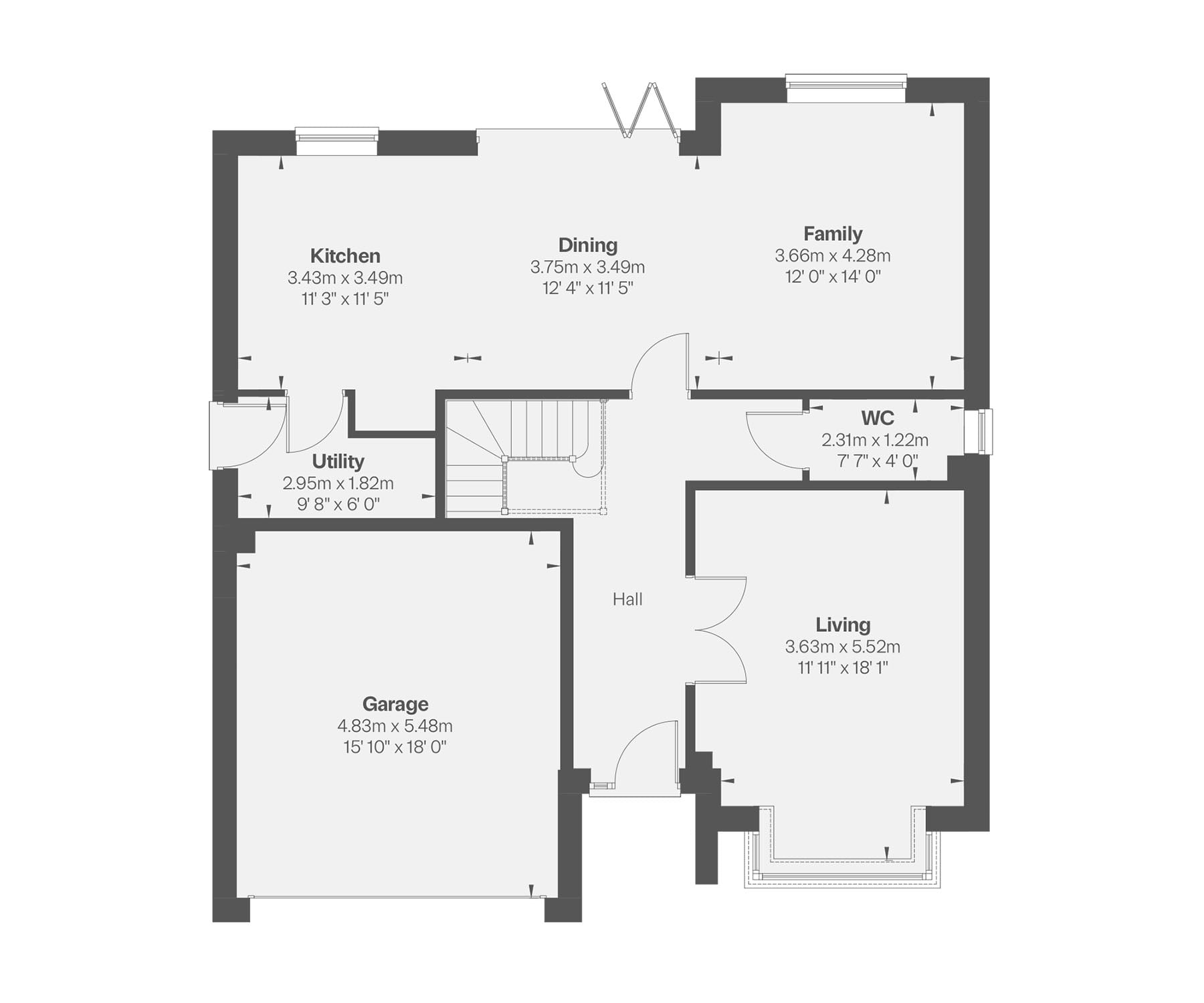 - Open-plan kitchen, dining and family area with bi-fold doors onto rear garden
