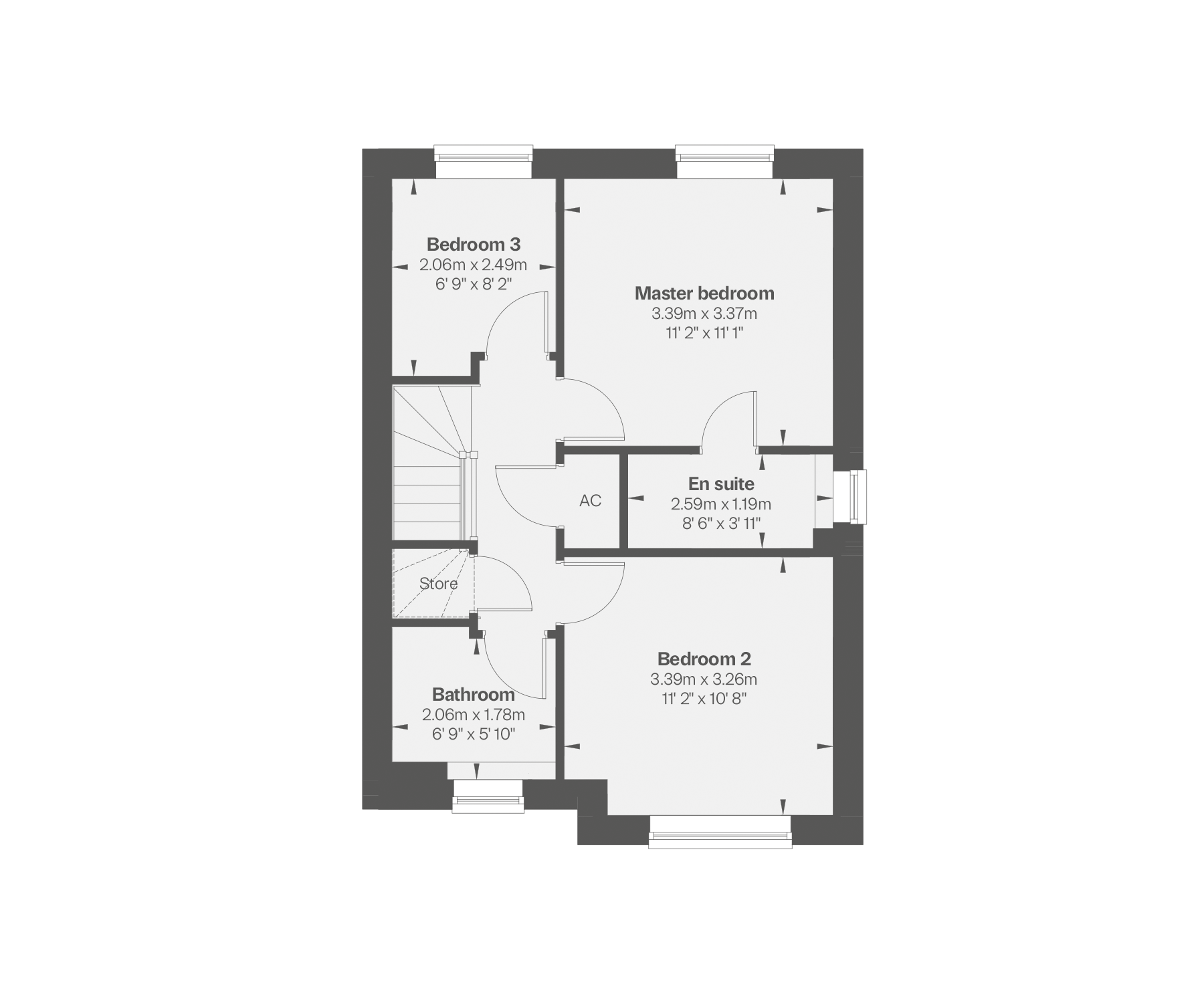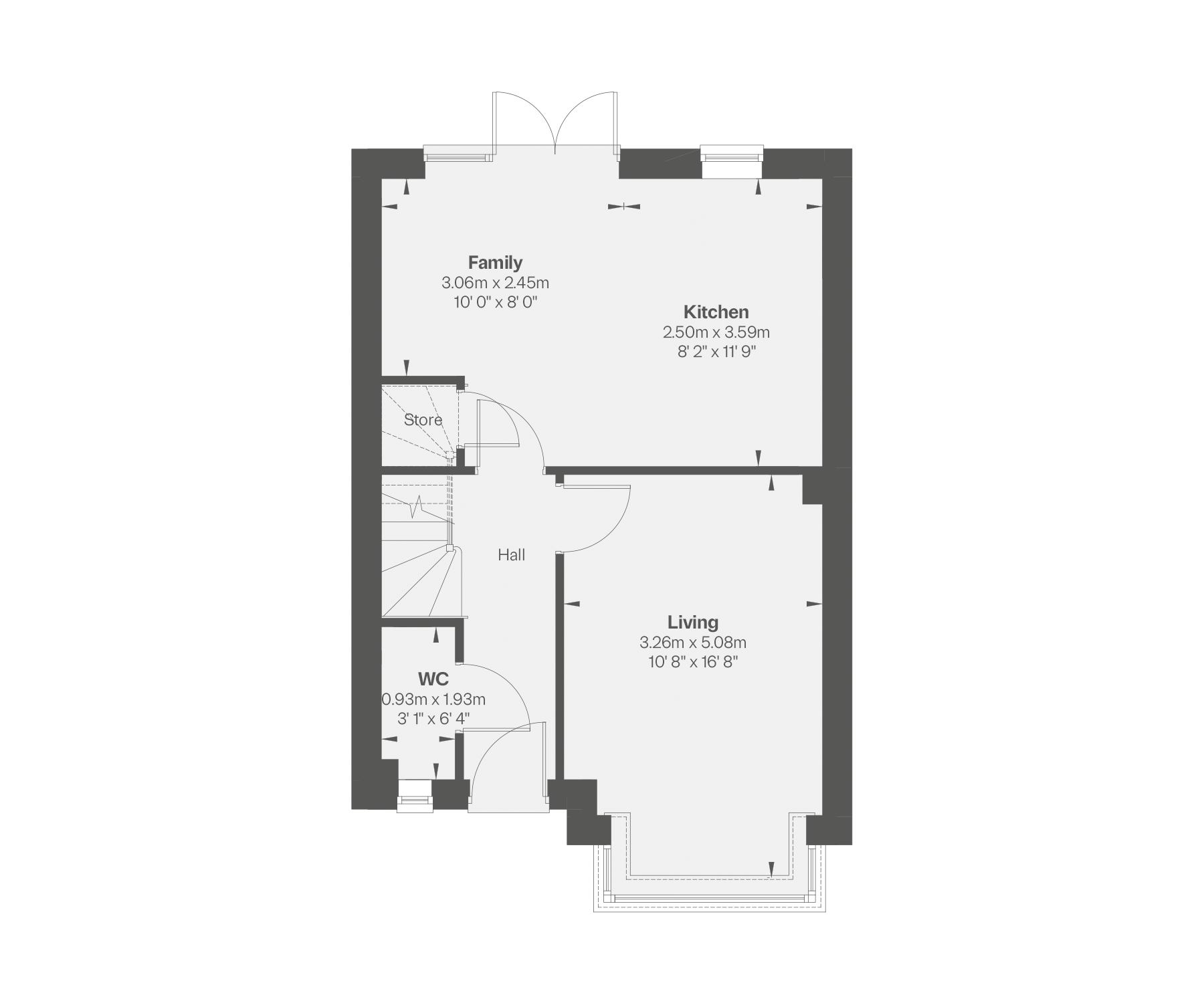- Separate living room with feature bay window